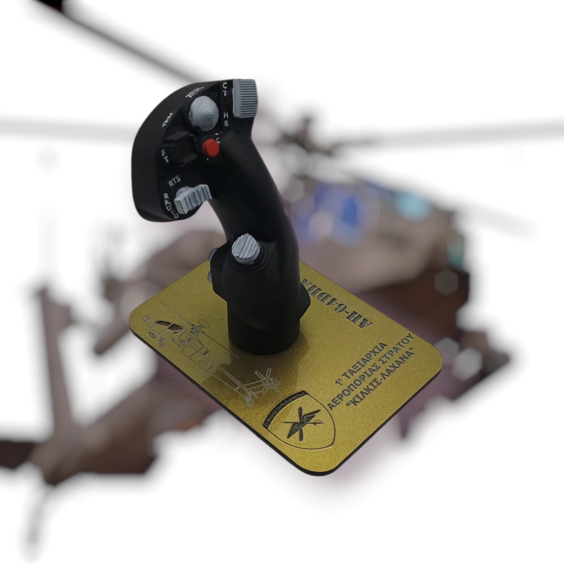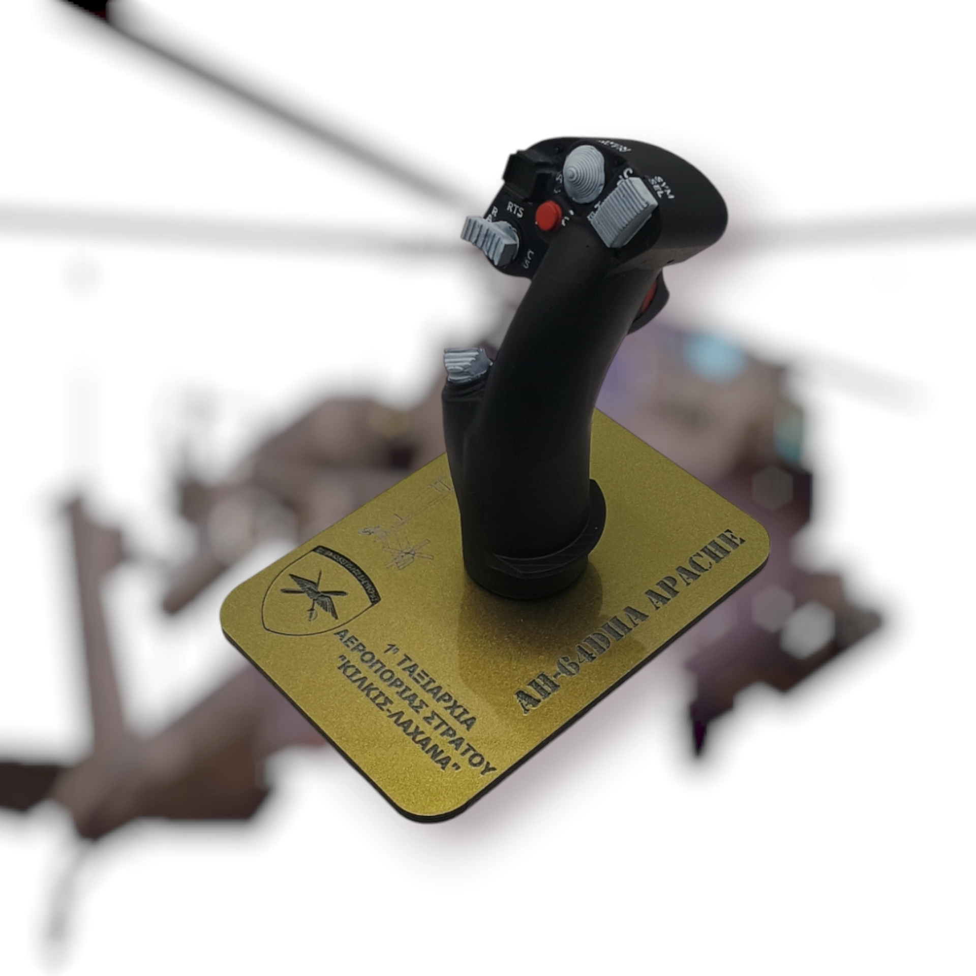 A 9cm replica of the AH-64D APACHE cyclic, crafted with unparalleled quality and fidelity to grace your collection.