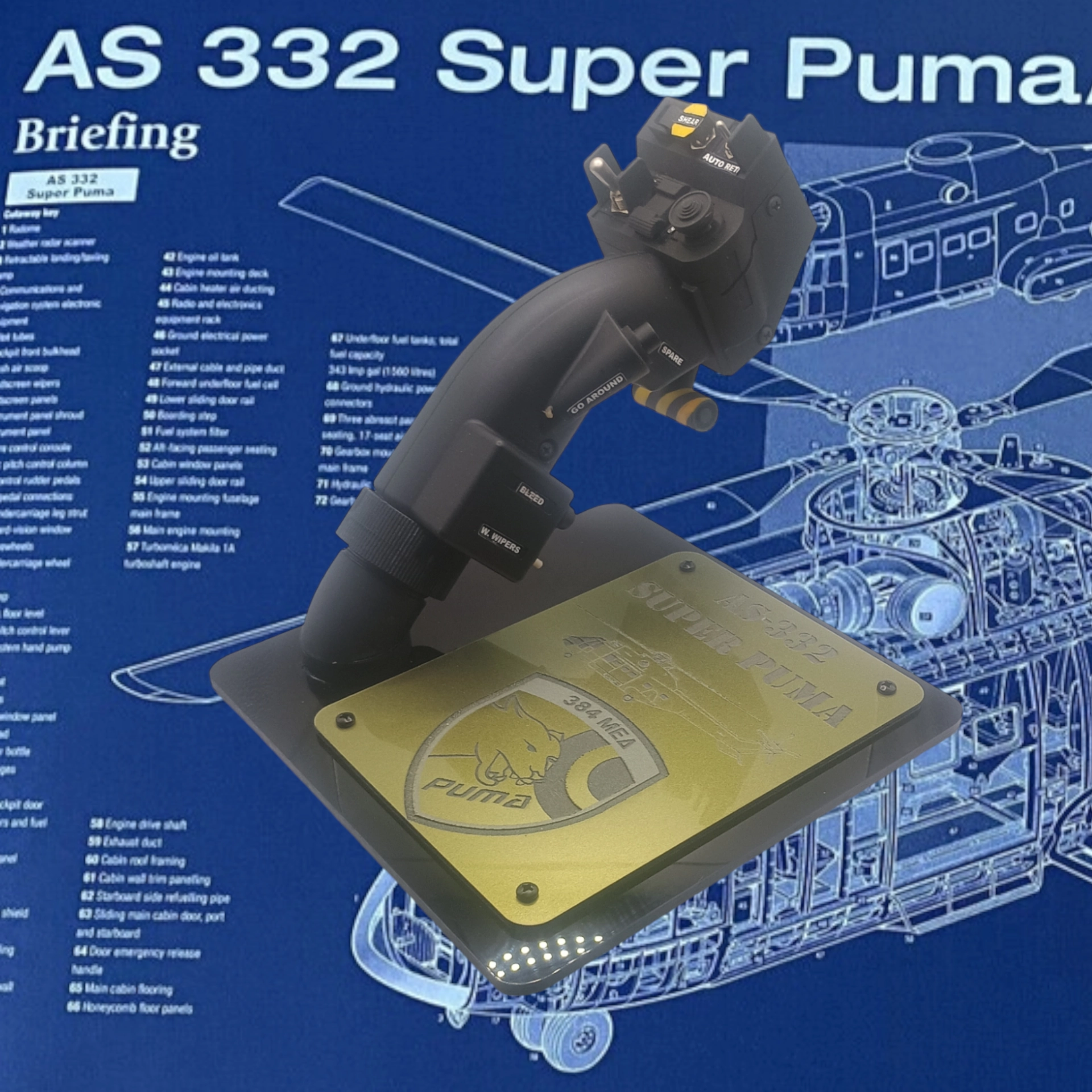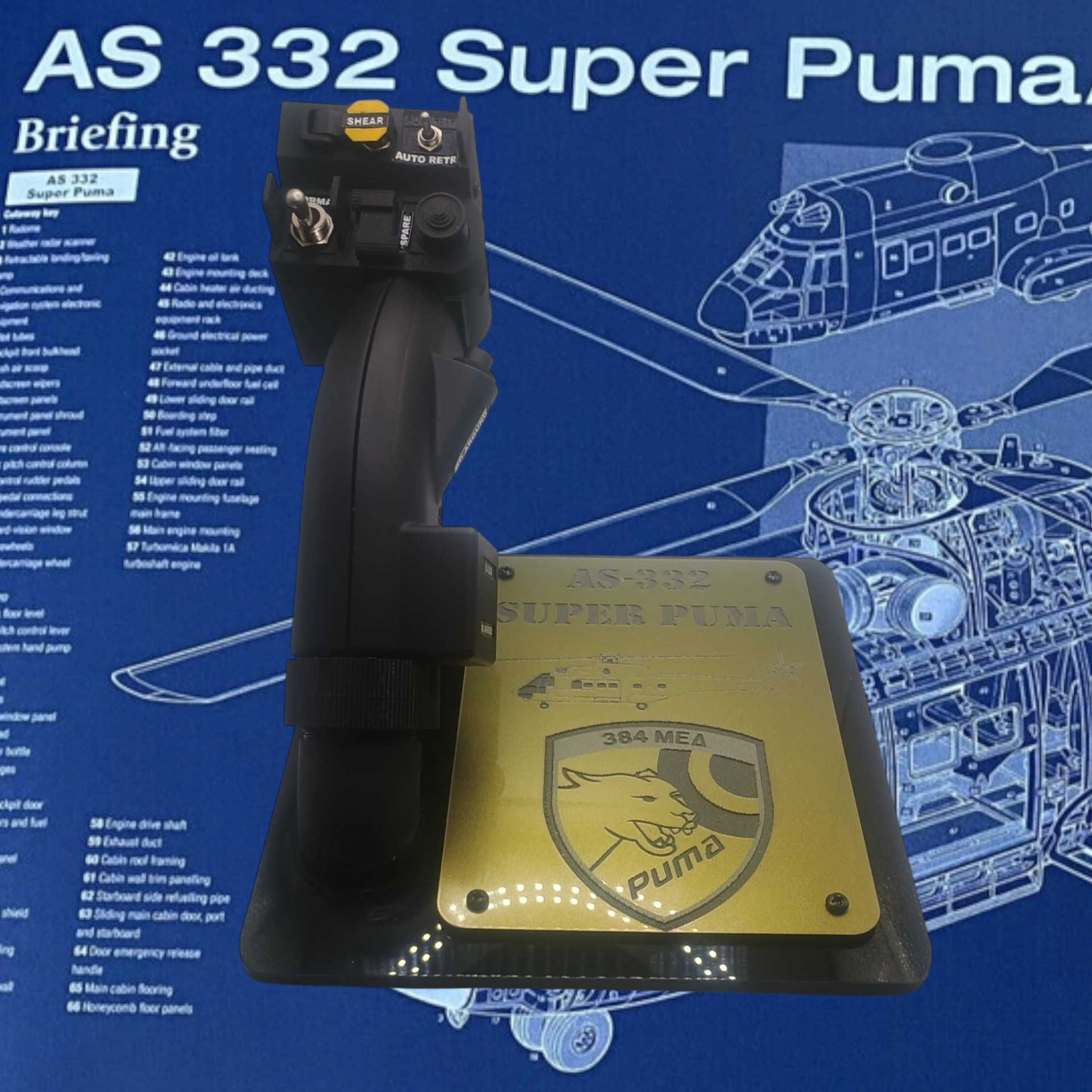 A 1:1 scale replica of the AS-332 SUPER PUMA collective, featuring active switches, active HATs, and trim for unparalleled realism, crafted with exceptional quality and fidelity to enhance your collection.